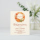 Um fundo bege quente e suave. Decorado com uma coroa temática de outono com folhagem laranja e abóboras. Com o texto: Jantar de Ação de Graças escrito com uma fonte moderna de letra manuscrita. Personalize e adicione os detalhes. 1 folha = 1 convite impresso de ponta a ponta.
