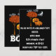 Com Letreiro Sinistro no Céu Preto com Lua Crescente e Nuvens com Família de Abóboras Fofo sob uma Árvore com Folhas de Outono Laranja Convites de Festa de Halloween. Repetição de todos os gráficos no verso do cartão, mas com um BOO! simpático e fofo! com olhos! Para criar a Atmosfera! Venha se você ousar!