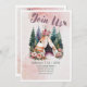Um encantador convite de acampamento em aquarela com uma tenda boho rodeada por pinheiros e flores em flor. Perfeito para festas ao ar livre, casamentos na floresta, chás de bebê ou qualquer celebração inspirada na natureza. Esta ilustração única combina tons terrosos suaves com acentos florais, criando uma atmosfera pacífica e caprichosa para o seu evento especial.