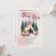Um charmoso convite de acampamento em aquarela com uma tenda tupi boho rodeada por pinheiros e flores em flor. Perfeito para festas ao ar livre, casamentos na floresta, chá de bebê ou qualquer celebração inspirada na natureza. Esta ilustração única combina tons terrosos suaves com sotaques florais, criando uma atmosfera pacífica e caprichosa para o seu evento especial.