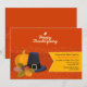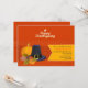 Um convite animado e sazonal para o Janto de Ação de Graças. O fundo laranja tem uma abóbora, um chapéu de peregrino e folhas de queda com bolotas. A faixa lateral amarela contém as informações do seu partido. <br/>() A placa é fácil de personalizar com o seu texto, fonte, cor da fonte, opções de forma de papel e escolha de seis tipos de papel.<br/>() Não exatamente o que você está procurando? Todos os nossos produtos podem ser personalizados para atender às suas necessidades sem custos adicionais.<br/>() Basta entrar em contato conosco em askpixieprints@aol.com.<br/>() Coordenando os produtos disponíveis: Apenas nos pergunte!