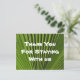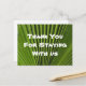 Torne a estadia do seu hóspede memorável e diferencie o seu aluguel de casa da concorrência com este cartão postal barato. Este cartão postal promocional apresenta uma foto da natureza que captura uma folha de palmeira verde brilhante exibindo as ranhuras profundas e sombrias desta planta tropical. "Obrigado por ficar conosco" pode ser rapidamente personalizado se desejar.