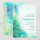 Convite de Aguarela Azul Turquesa de Flores Dourad