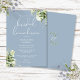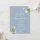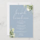 Este convite de almoço de noiva em azul empoeirado com folhas de verde botânico elegante pode ser personalizado com suas informações em tipografia sofisticada com seus iniciais do monograma no verso. Criado por Thisisnotme©
