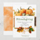 Um convite moderno de amizade com um toque de aquarela. O design apresenta uma aquarela vibrante Pumpkins com cores de outono combinadas. No centro, coloque uma caixa de madeira rústica que flui com abóboras vibrantes de várias formas e tamanhos. O texto "Ação de Amizade" é claro e convida a criar um na moda e uma vibração acolhedora.