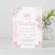 Explore nosso adorável convite de aniversariante de princesa rosa-rosa, adorável, adorado com flores cor-de-rosa e prateadas. Este design bonitinho e encantador dá o tom perfeito para um ajustado memorável de celebração para sua pequena realeza.