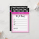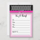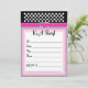 Convite de aniversário com uma cinta rosa quente e preto com bolinhas brancas.