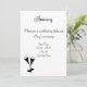 Branco e preto com uma dica de ouro. Duas flautas de champanhe no canto inferior esquerdo. "Aniversário" com alianças no topo. E texto personalizável no centro