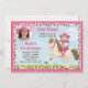 Garotas bonitas de vaqueiro andando no Convite de Aniversário da Festa dos Cavalos. Este convite para o tema ocidental mostra uma garota montando em um cavalo vestindo um chapéu de cowboy e botas cor-de-rosa com uma foto do seu filho. Alguns elementos de www.nitwitcollections.com Licença nº 41088