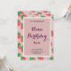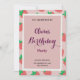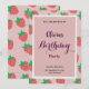 Celebre um dia especial com este convite inspirado em morango! Apresentando um charmoso design em tons de vermelho e rosa, esta placa adiciona um toque refrescante e alegre à sua festa. Seja aniversário para a sua garotinha, uma comemoração temática de fruta, ou até mesmo um primeiro aniversário, este convite vai deixar seus convidados animados para o evento.