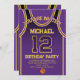 Celebre seu dia especial com este Convite de Aniversário de Basball Jersey, projetado para fãs de basquete verdadeiros! Com uma design ousada de camisa inspirada pelas icônicas cores roxa e dourada, este convite é perfeito para crianças, adolescentes e adultos que adoram o jogo. Personalize-o facilmente com seu nome, idade, detalhes de festas e até mesmo o número do grupo em apenas alguns cliques. Disponível em vários tamanhos, impresso em papel de qualidade superior com uma grande variedade de acabamentos para corresponder ao seu estilo. Escolha dentre diferentes tipos de papel, impressão rápida e envio rápido para que seus convites cheguem a tempo. Seja para uma festa com tema desportivo ou para uma comemoração de fãs Lakers, este convite é a forma perfeita de entusiasmar os vossos convidados.