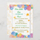 Um convite de aniversário colorido e encantador para o quarto aniversário de Kiki, com balões de aquarela, estrelas de ouro e ícones de festas brincalhões. O evento está marcado para 25 de abril de 2025, às 15h no quintal.