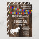 Design de festas de cavalos com textura de fundo de madeira rústica, guarnições coloridas e silhueta de cavalo. Personalize digitando sua própria redação sobre o texto de amostra. Você também pode adicionar outro texto ou imagens pessoais (frente e verso). Para acessar ferramentas avançadas de edição, vá para "Personalizar", role para baixo e pressione o link "clicar para personalizar mais". Para obter mais designs correspondentes, clique no link "Outros produtos desta coleção".