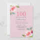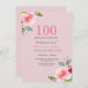 Bonito cor-de-rosa Floral 100º Convite de aniversário Pintado à mão design de cor d'água floral Ver nosso conjunto correspondente acima da Design de cortesia de: www.createthecut.com