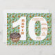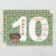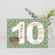 Um número corajoso, branco "10" guardara sua informação do nome e do convite. O fundo "funky" é verde com alaranjado, branco e redemoinhos e pontos do preto. O bolo de chocolate com "feliz aniversario" pode ser arrastado a toda a posição, ser feito menor ou maior ou ser eliminado. Este design do divertimento é apropriado para um ou outro género.