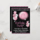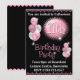 11 Convite de aniversário com balões. Esquema de cor rosa e preto.