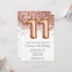 Convite de aniversário 11 rosa Dourado e convite de aniversário-ouro elegante e moderno 11 para uma menina de 11 anos com escrevendo moderno de escrita e balões de folha divertida.