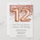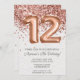 Convite de aniversário 12 rosa Dourado e convite de aniversário-ouro elegante e moderno 12 para uma menina de 12 anos com escrevendo de escrita moderno e balões de folha divertida com fundo de papel de textura impresso.