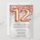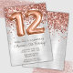 Convite de aniversário rosa Dourada prateado e convite de aniversário-ouro elegante e moderno 12 para uma menina de 12 anos com escrevendo moderno de escrita e balões de folha divertida.