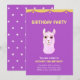 Placa de Convite de aniversário 13. O cartão de aniversário tem uma lindíssima lama rosa sobre fundo ultravioleta. Há um padrão estelar no verso. O texto está pronto para ser personalizado. Palavra lama significa várias coisas.