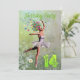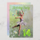 Uma bela fada de flores de bailarina dançando em um convite de aniversário. A bailarina está vestindo um tutu branco, e tem rastros de flores vindas de seu cabelo. Ela está dançando através de um cheio de margaridas.