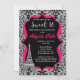 Jogue uma fabulosa festa de 16 anos com este Convite de Aniversário Parisiense! Apresenta uma estrutura de rolagem a preto e rosa quente, Torre Eiffel com brilho prateado e fundo fleur de lis. Perfeito para aquela garota de vidro que está pronta para comemorar o grande seis!
