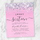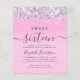 Convite de aniversário 16º cinzenta, favorável ao orçamento, com falso confete roxo, rosa e prateado brilhante holográfico contra fundo rosa e "Doce Dezesseis" numa mistura de tipografia elegante de cinzas moles e um roteiro de tendências com pântanos.