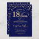 18º Convite de aniversário. Design elegante com ouro brilhante falso e azul marinho. Saúde para 18 anos! Envie-me uma mensagem se precisar de mais personalização.