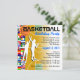 Convite de aniversário de basquete 25 para festa de jogo de basquete ou festa de tema de aniversário de criança. Personalize este convite reescrevendo todo o texto.