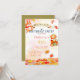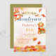 Este design apresenta os elementos outono de outono com folhas de folhagem vermelhas, laranja e amarelas com um urso fofo com um cheio de cesto de maçãs. Perfeito para uma festa de aniversário de menino ou menina!