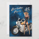 Uma linda moça de bicicleta aponta para o seu convite de festas. Um convite irresistível para homens de qualquer idade.
