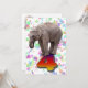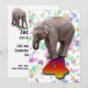 Um convite de aniversário divertido para o macaco-preguiçoso da sua família. Um elefante bebê parado em um número, com muitos números caindo no fundo. As costas têm elefantes em skates.