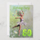 Uma bela fada de flores de bailarina dançando em um convite de aniversário. A bailarina está vestindo um tutu branco, e tem rastros de flores vindas de seu cabelo. Ela está dançando através de um cheio de margaridas.