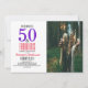 Um convite para fotos de 50 anos, moderno, você pode personalizar e enviar para sua festa de 50 festas de aniversário. As palavras "50 e Fabuloso" são definidas utilizando a tipografia popular. Substitua a foto da amostra pela sua. As cores de texto vermelho e preto podem ser alteradas usando o menu de edição. Um padrão quevron multicolorido enfeita a parte traseira do cartão. Outras cores e padrões estão disponíveis.
