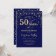 convite de aniversário 50 - Azul Marinho Dourado