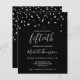 Este design moderno apresenta confete triangular prateado falsa em um fundo preto. A palavra "cinquenta" aparece na elegante fonte de escrita manual de cinzas. Personalize o convite com o nome do convidado de honra na fonte de escrita manual de cinzas leves, juntamente com a data, local e outros detalhes no tipo de serifa de cinza leve.