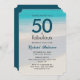 "50 e Fabulosa" 50ª Design da costa para ele. A tipografia é feita em uma foto da costa tropical com uma praia arenosa e um mar azul-turquesa.
