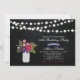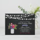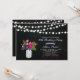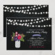 Celebre seu dia especial com este convite de na moda. Este design apresenta luzes de cordas, jarro de pedras e buquê de flores com fundo de quadro.