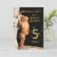 Um convite de aniversário divertido para o macaco-preguiçoso da sua família. Um bebê orang utan parado num tronco e olhando para cima.