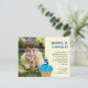 Um cupcake com gelo azul, pontilhado com uma flor e uma vela numérica de "5", é o principal foco desse lindo convite de aniversário. Adicione a foto do seu filho à esquerda e qualquer informação extra no verso. Disponível em cores e idades alternativas com produtos correspondentes.