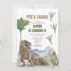 Convite de aniversário T-rex para um dinossauro pequeno. Borda de dinossauros realísticos de aquarela.