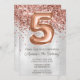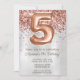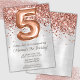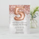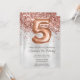 Convite de aniversário rosa Dourado de Prata 5 e convite de aniversário-ouro elegante e moderno 5 para uma menina de 5 anos com escrevendo moderno de escrita e balões de folha divertida.