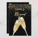 Brinde de champanhe em preto com confete colorido para convite para 70 festa de aniversário.