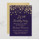 Ouro round confetti no Convite de aniversário 70 de fundo de gradiente violeta