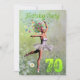 Uma bela fada de flores de bailarina dançando em um convite de aniversário. A bailarina está vestindo um tutu branco, e tem rastros de flores vindas de seu cabelo. Ela está dançando através de um cheio de margaridas.
