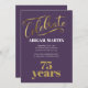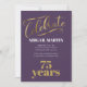 Púrpura elegante, ouro e convite de aniversário branco 75º para mulheres.