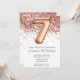 Convite de aniversário 7 de rosa Dourado e convite de aniversário-ouro elegante e moderno 7 para uma menina de 7 anos com a escrita moderna escrevendo e balões de folha divertida.
