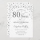 Convite de aniversário 80. Design elegante com falso brilho de prata e branco. Saúde para 80 anos! Envie-me uma mensagem se precisar de mais personalização.