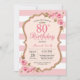 Convite de aniversário de 80 de Peões Rosa Floral para mulheres. Dourada Glitter. Chic Floral de Flor de Água. Listras brancas e rosa. 13 15 16º 18º 20 21 rua 30 40º 50º 80 de 60º 70 de 100º, qualquer idade. Digital Imprimível. Para mais personalização, clique no botão "Personalizar" e use a ferramenta design para modificar este modelo.