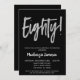 Um convite de aniversário elegante, simples, mas impressionante, preto e 80 prateado. Texto do script Glam na parte superior e texto prateado abaixo com o nome em branco sobressalente
